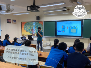 我哋運用左平日喺課堂上學到嘅科學知識去進行各種水質測試,亦明白到測試嘅準確度對維持水質尤其重要。(佛教大光慈航中學)
